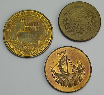 Lot bestående af Dag Hammarskjöld medaille 1961, 2 kr Trelleborg lokalmynt 1978 og National Jamboree 1973 USA. Sidstnævnte Diam. 39 mm.