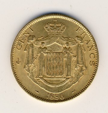 Monaco, 100 Francs GULD 1886