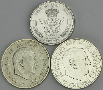 Frederik IX, 5 og 10 kr SØLV 1960,-67,-72 - H. 1, t.2