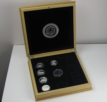 5 stk. medailler af sterlingsølv, præget m. motiver fra Danmarks historie og H.C. Andersen.