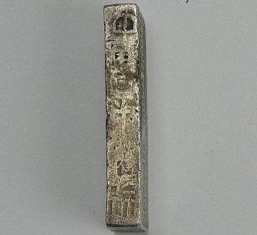 Yderst interessant sølvbarre fra Vietnam, præget under Gia Long. L. 43 mm.
