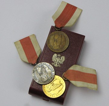 Tre polske medaille af henholdsvis forsølvet, forgyldt og alm. bronze, givet for serviceydelser til landets forsvar af Forsvarsministeriet. Fremstår m. originale bånd.
