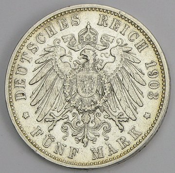 Wuerttemberg, Wilhelm II, 5 mark SØLV 1903F - KM 632