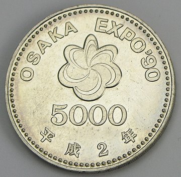 Japan, 5000 yen STERLINGSØLV 1990 - Y# 100 *Nydelig*