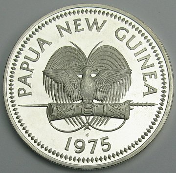Papua New Guinea, 10 kina 1975 STERLING SØLV - KM 8a