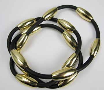 Håndfremstillet design halskæde af 14 kt. guld, bestående af 14 ovale, tøndeformede led, 25,7 x 11,6 mm., hvorimellem rundt gummibånd. L. 80 cm. Totalvægt 215 gr.