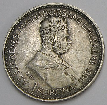 Ungarn, Franz Joseph I, korona SØLV 1896 - KM 487