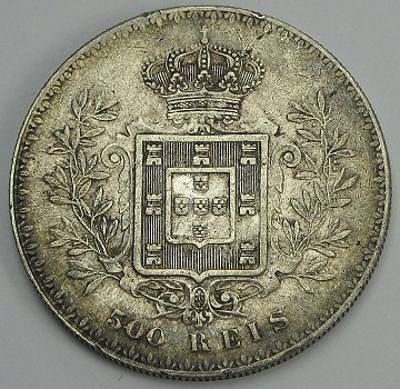 Portugal, Carlos I, 500 reis SØLV 1891 - KM 535 *Pæn*