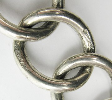 Armlænke af sterling sølv med ankerled, stemplet "Håndsmade" og Sterling. L. ca. 19 cm. Vægt 69,8 gr. Fremstillet hos Aarre & Krogs Eftf., Randers efter 1949