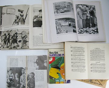 Lot bestående af *Krigen i billeder*, *Besat og Befriet*, Hans Kirk *Djævelens Penge*, Erwin Leisner *Mein Kampf - en billeddokumentation* samt 3 hæfter Kriegsskrifter med tyske soldatersange fra 1914/18