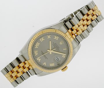 Herrearmbåndsur fra Rolex, model Datejust, ref.nr.: 116233, Z-serie, i kasse og m. jubilee-lænke af 18 kt. guld og stål, sølvfarvet skive m. romertal, datoangivelse ved 3" position, riflet lynette af 18 kt. guld, safirglas, automatisk urværk. Fra 2006. Ø. 36 mm.
