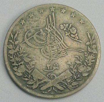 2 qirsh 1884 - AH1293/10. Finsølvindhold 2,3 gr.