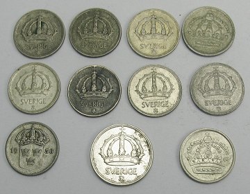 Sverige, lot 10 øre 1938-1957 og 25 øre 1944 (11)