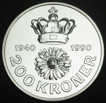 200 kr 1990 FINSØLV Proof *Dronningens 50 års fødselsdag*