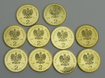10 forskellige, ucirkulerede 2 zlote - Y 644, 709, 641, 783, 794, 525, 656, 788, 804 og 752.