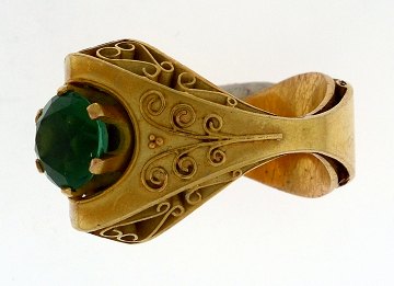 Ring af 18 kt. guls med forhøjet, gennembrudt skinne, prydet med diamantsleben turmalin, stemplet Exner og 750. Str. 52, samlet vægt 9,1 gr.