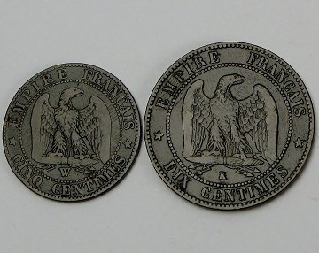 Frankrig, Napoleon III, 5 og 10 centimes 1856 - KM 771.5, 777.7
