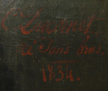 L.C.J Ducornet, muligvis selvportræt af kunstneren eller portræt af en armløs mand, lige som kunstneren selv. Signeret olie på lærred, dateret 1834, 50 x 60 cm. Læs mere om kunstneren her