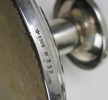 Par stager af sølv på rundt fodstykke, Diam. 11 cm., H. 5 cm.