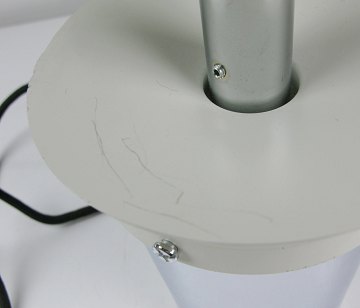 Fremstår i velholdt stand med alderspatina. Fatningshus i toppen med ridser og få buler.(se foto!). Ophæng i form af baldakin og barduner medfølger ikke.