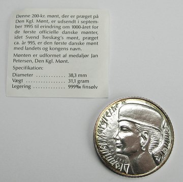 Danmark, 200 kr SØLV 1995 *1000 års mønten 995-1995*