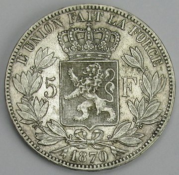 Belgien, Leopold II 5 francs 1870 - KM 24