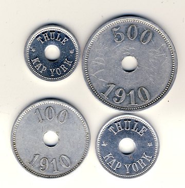 Thule Kap York, 5-25-100 og 500 øre 1910