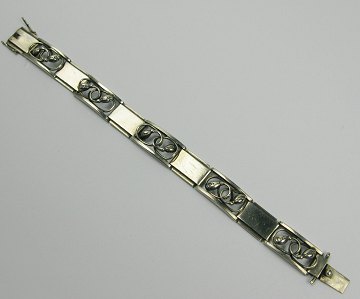 Stilfuld armlænke a sterling sølv med lige ogbuede led, dekoreret med magnolier. Vægt 37,9 gr. Fremstillet hos Børge Axel Meyer, København 1937 - 1948