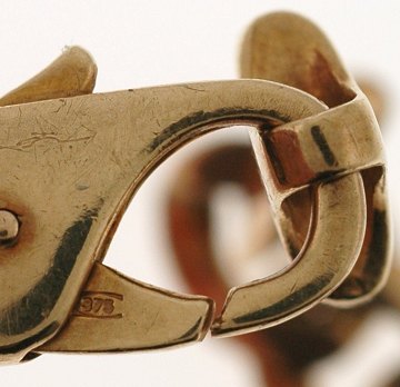 Armlænke af 9 kt. guld, pansermønster. L. 21 cm. Stemplet: "375".