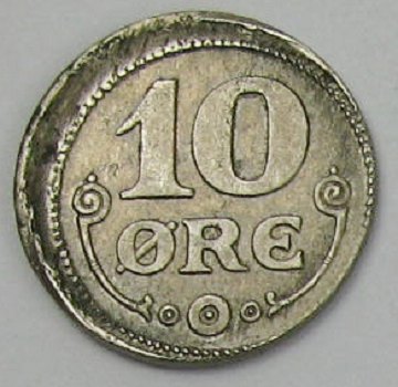 Chr. X 10 øre 1920 fejlpræg (tallerkenpræg)