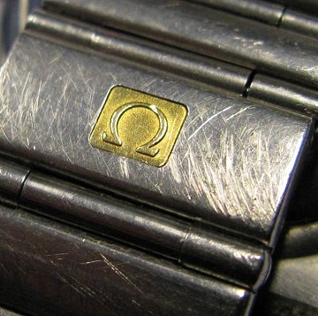 Omega Contellation Chronometer unisex armbåndsur i urkasse af stål med koksgrå skive, stregindikation og krans med romertal, central sekundviser og datovisning i #3 positionen. Automatisk værk. Omega lænke af stål. Urkassse Diam. 36 mm.