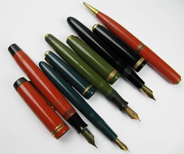 lot bestående af 3 Parker fyldepenne med duofold spids af 14 kt. guld, 1 Parker Penol fyldepen samt Parker pencil. Fem enheder i alt fra 1920- ca. 1950.