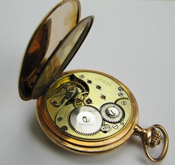 Omega, dobbeltkapslet lommeur i urkasse af 14 kt. GULD