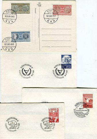 Lot bestående af 5 olympiademærker med medaillepåtryk fra De Forenede Arabiske Emirater, Canada 8-, 10 og 15 cents mærker, 3 førstedagskuverter og 3 udgivelseskort.