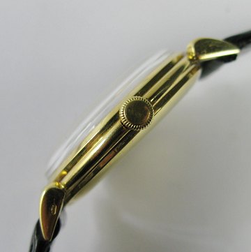 IWC vintage herrearmbåndsur fra 1948 i urkasse af 18 kt. guld. Lys skive med stregindikationer og central sekundviser. Optræksværk. Læderlænke med metalspænde. Urkasse Diam. 36 mm.