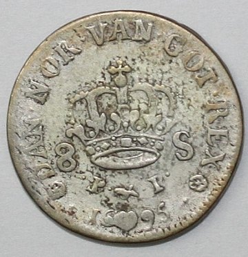 Christian V 8 Skilling 1695 SØLV - Sieg 16.1, H 113