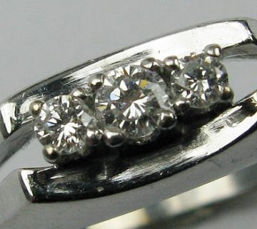 Ring af 14 kt. hvidguld med forhøjet, spaltet skinne, prydet med tre brillantslebne diamanter i en fin kvalitet, samlet ca. 0,17 ct. Ring Str. 54, samlet vægt 4,2 gr.