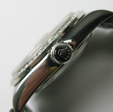 Herrearmbåndsur fra Rolex, model Datejust, ref.nr.: 16220, Y-serie, fra 2002, m. jubilee-lænke af stål, Rosa skive med brillanter, datoangivelse ved 3" position, safirglas, automatisk urværk. Urkasse Diam. 36 mm. Uret fremstår med lunette monteret med brillanter af meget fin kvalitet, formodentlig eftermonterede.