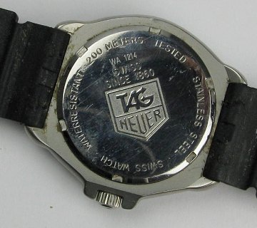 Tag Heuer herrearmbåndsur i urkasse af stål med sort skive, rød sekundindikation og central sekundviser. Sort lynette med hvide og røde tal. Quartsværk. Gummilænke med metalspænde. Urkasse Diam. 35 mm.