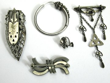 Lot delvis forsølvede og emaillerede smykker hidrørende fra Færøerne.