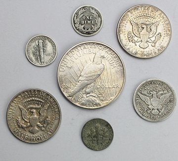 USA, lot dollar, half-dollar quarter og dime SØLV (7)