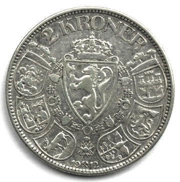Norge, Håkon VII 2 kr. 1912 SØLV - KM 370
