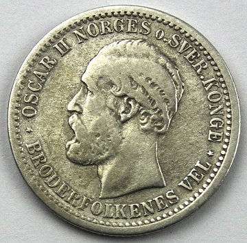 Oscar II, 50 øre/15 skilling, 1874, Sølv, Sieg 46 (NM 50)