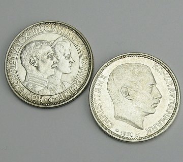 Danmark, 2 kr. Chr. X 1923 og 1930 af SØLV (2)