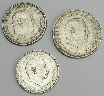 Danmark, 2 kr, 5 kr, og 10 kr SØLV (3)