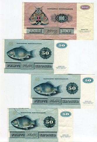 100 kr E3 1993, 50 kr. D0 1994, D2 1996 og D4 1997, 4 sedler i alt.