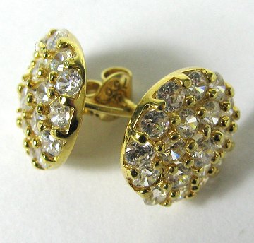 Par rosette ørestikker af 18 kt. guld, hver prydet med 19 brillantslebne sten. Diam. 11,5 mm. Samlet vægt 3,1 gr.