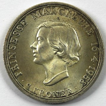 2 kr. 1958 SØLV *Prinsesse Margrethe 18 år* - 11 H 3
