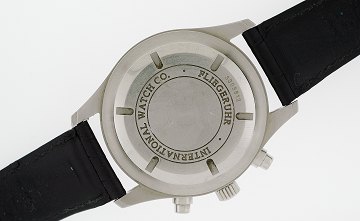 Schweizisk herrearmbåndsur fra International Watch Company (IWC), model Fliegeruhr, m. sort skive m. arabertal og stregindeks, chronograffunktioner, safirglas, originalt spænde og sort læderrem, automatisk urværk. Ø. 42 mm.