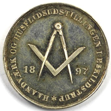 Sølvmedaille, præget i anledning af Haandværk- og Husflidsudstillingen 1897 i Eskildstrup. Diam. 28 mm., vægt 10,7 gr.